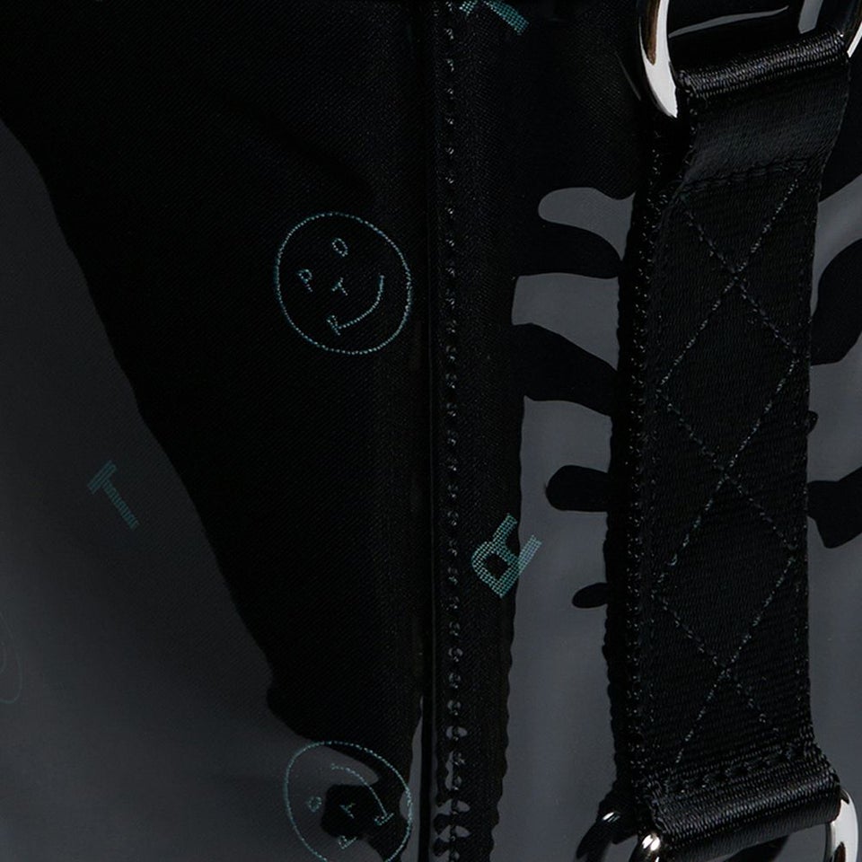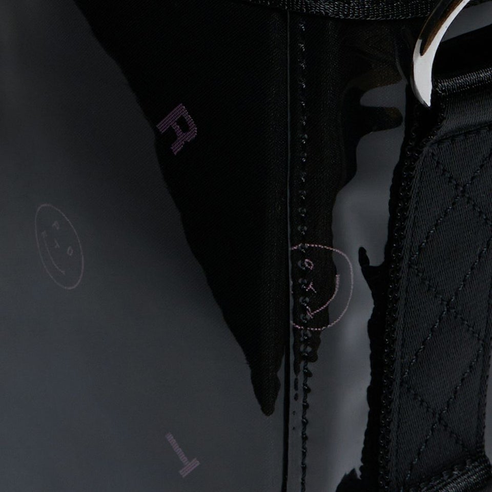 美しく繊細なジャカード織りの生地に、グロッシーなPVC素材を纏わせたバッグ本体は、光を受けてつやを放ちます。