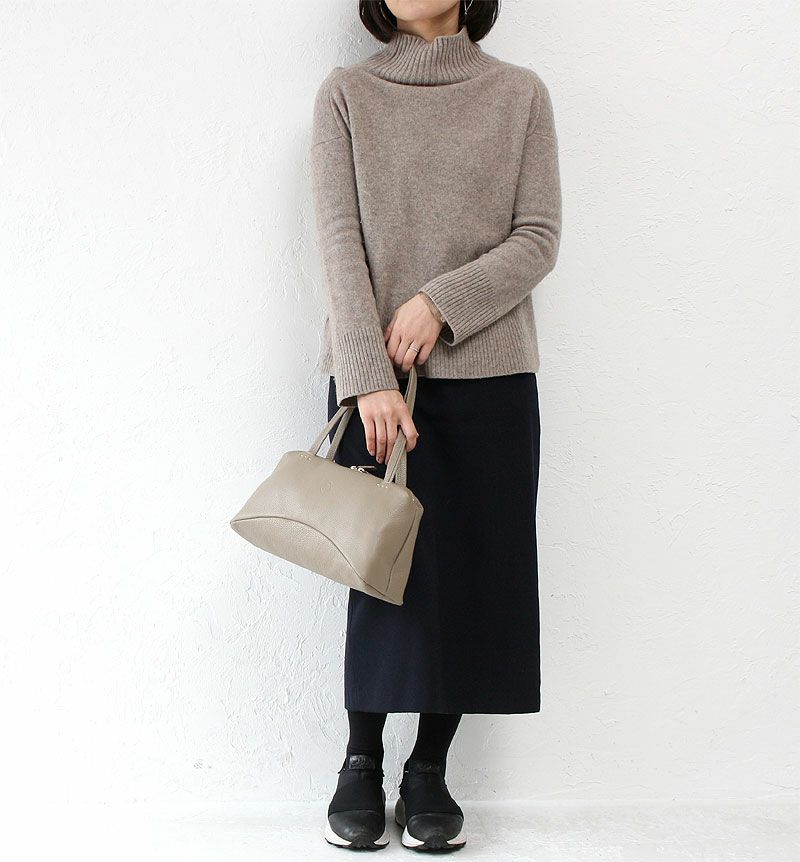 シンプルなデザインながら温かみを感じる持ち手付け根のステッチや、 バッグ下部縫込みによる滑らかな曲線がアクセントとなり、控えめに個性を放つ一品に仕上がりました。