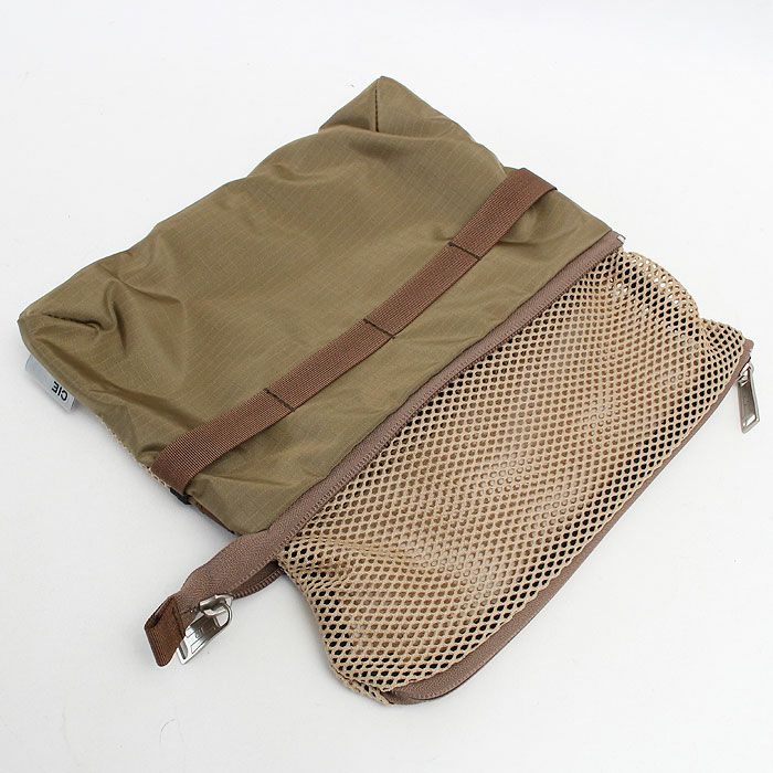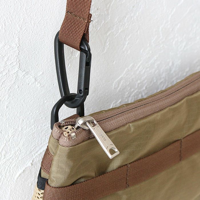 テープディティールは高密度で織られた畝が特徴的なミリタリーライクなトジ織のナイロンテープを使用しており、カラビナや小物などを引っ掛ける事を想定した格子状のテープ使いとなっております。