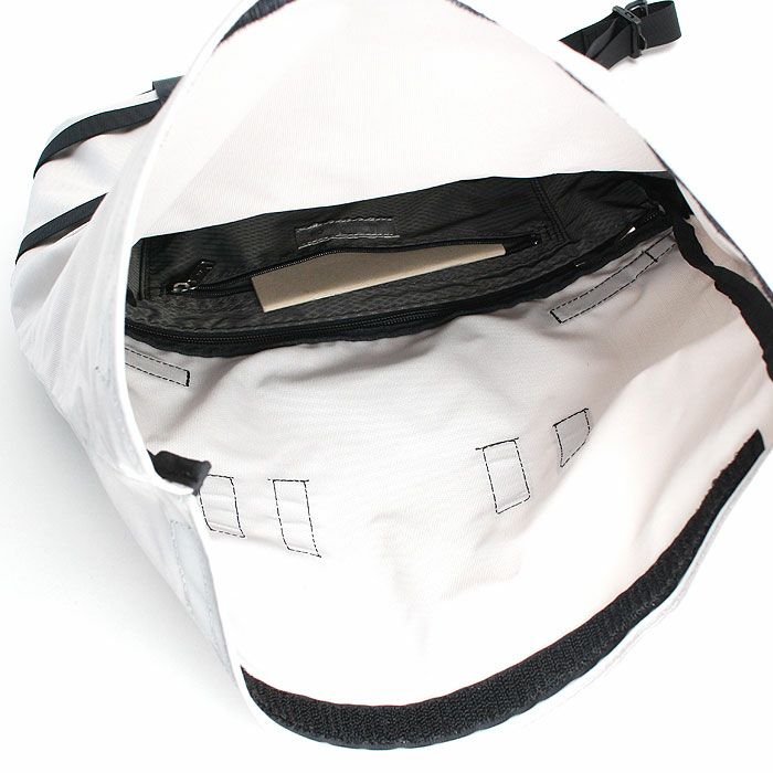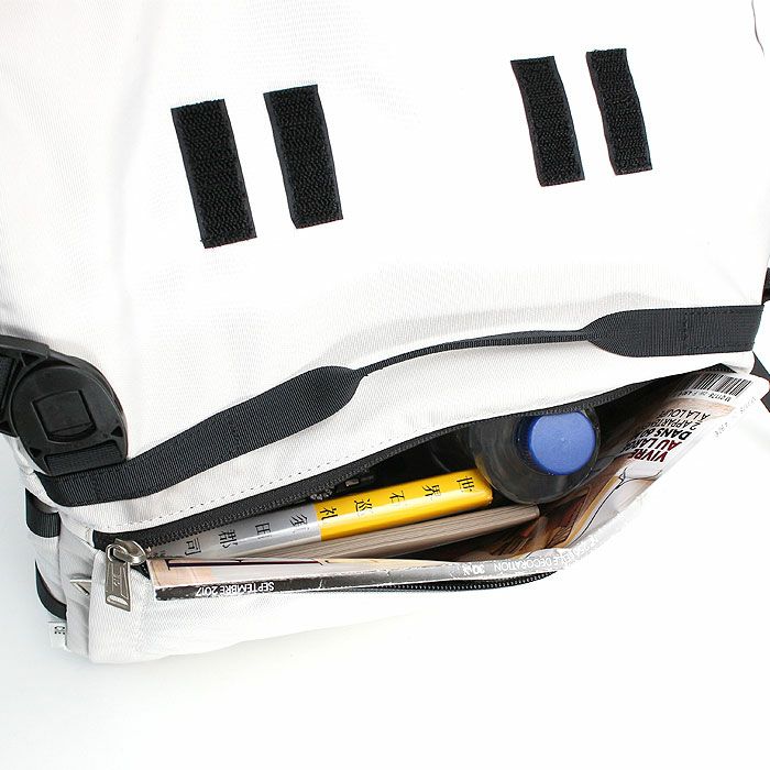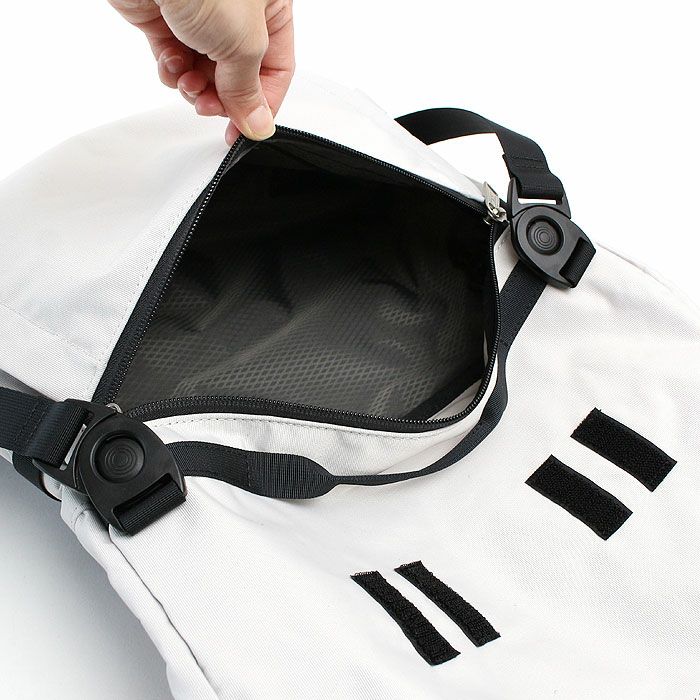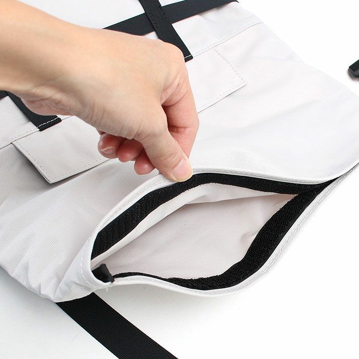 上部はロールトップ状となっており、マジックテープを外して畳まれた収納口を伸ばすことによってメイン収納へアクセスすることが出来る、防犯性の高い仕様になっております。
