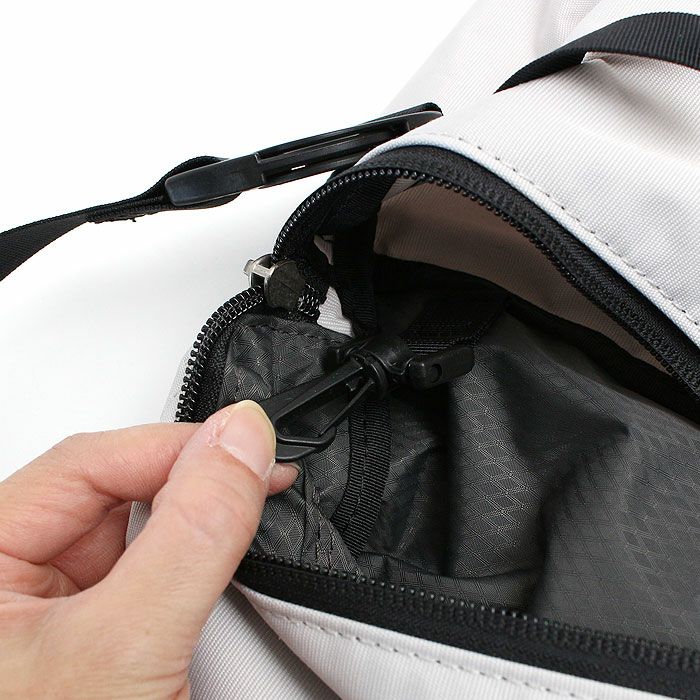 メイン収納内にはファスナーポケットが1ヵ所あり、小物の仕分けに便利です。