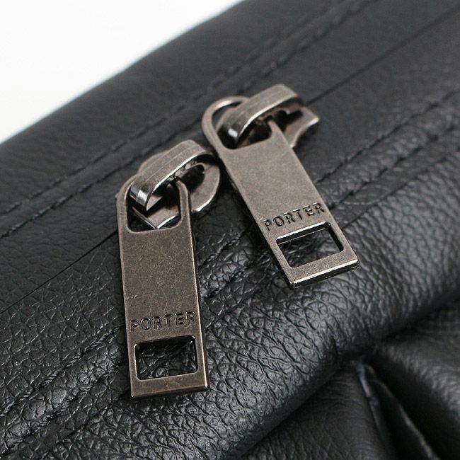 金具は光沢のある黒ニッケルメッキ加工を施し、PORTERの刻印が施されています。