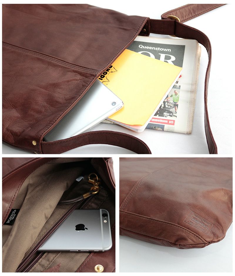 馬革の軽さや柔らかさを最大限に生かせるように金具を少なく、芯材もソフトなタイプを選び、部分的にトリプルステッチを施すことで伸びを防ぐと共にデザインのアクセントにしています。内装の生地は荷物の出し入れの際に手に触れることを意識して手触りのソフトなコットンサテンを用いました。