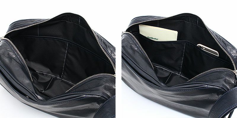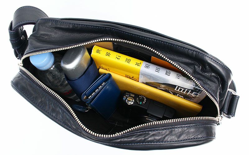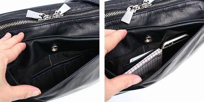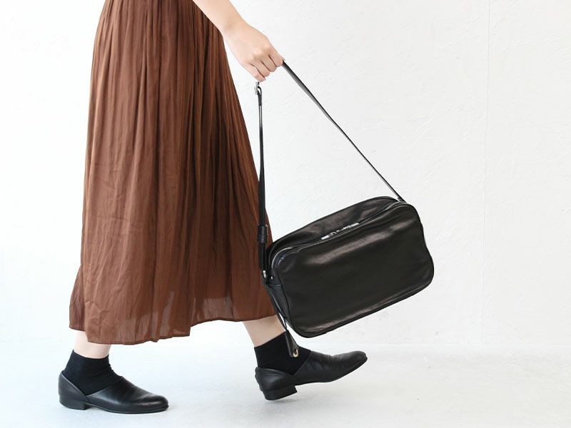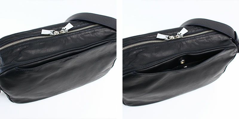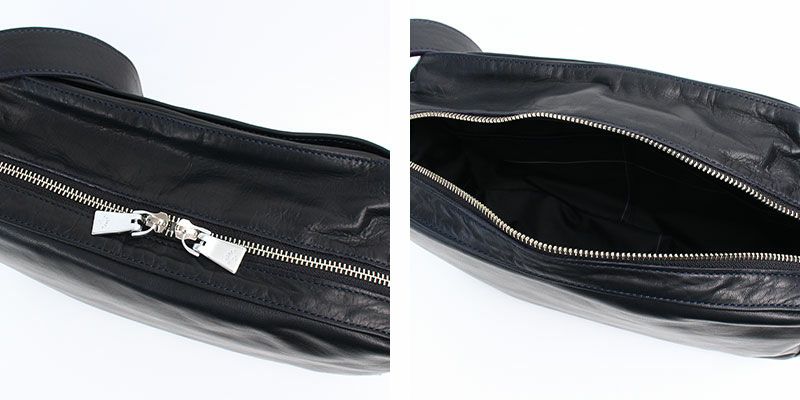 また、斜め掛けをしたままでも開閉をしやすくするために メインファスナーを中心からずれた位置に設置するなど、 細やかな工夫が使い勝手の良さを実現してくれています。