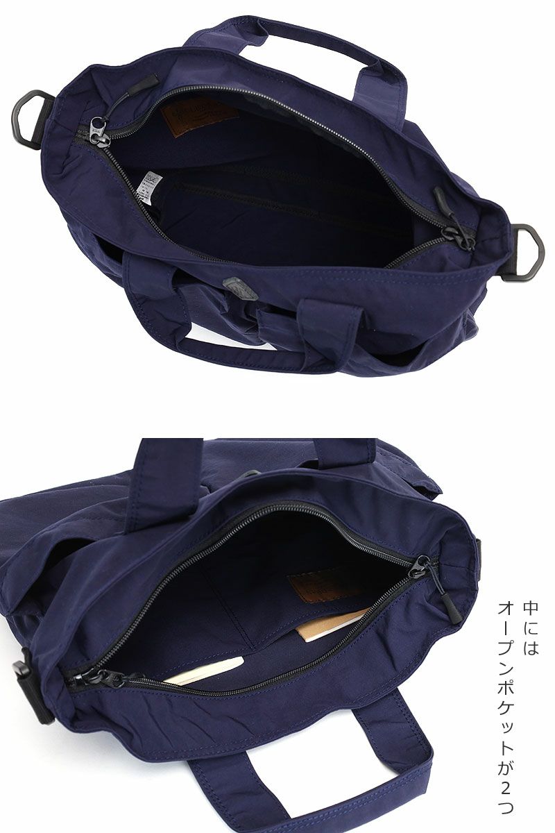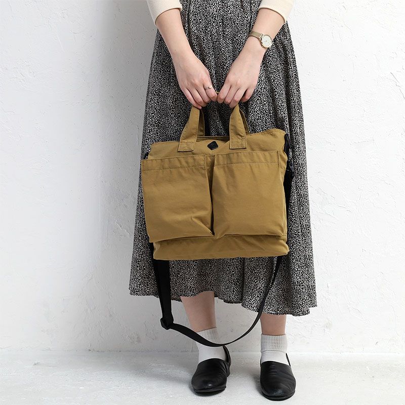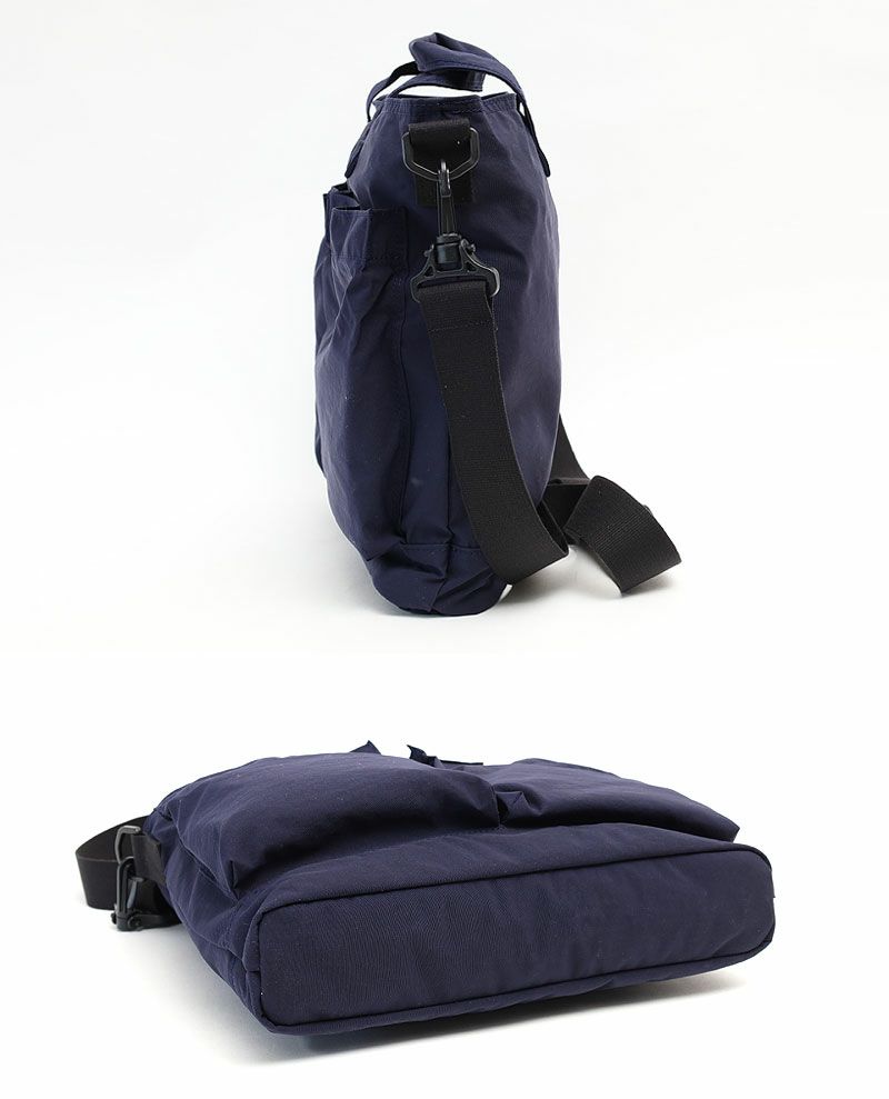 雨や汚れに強いタフ素材のナイロン仕立て・付属パーツの色をブラックに統一することで実現した 【メンズライクなルックスとA4対応で160gという超軽量さ】など… ミリタリー由来の"ヘルメットバッグ"の名に相応しい仕様の頼れるアイテム。