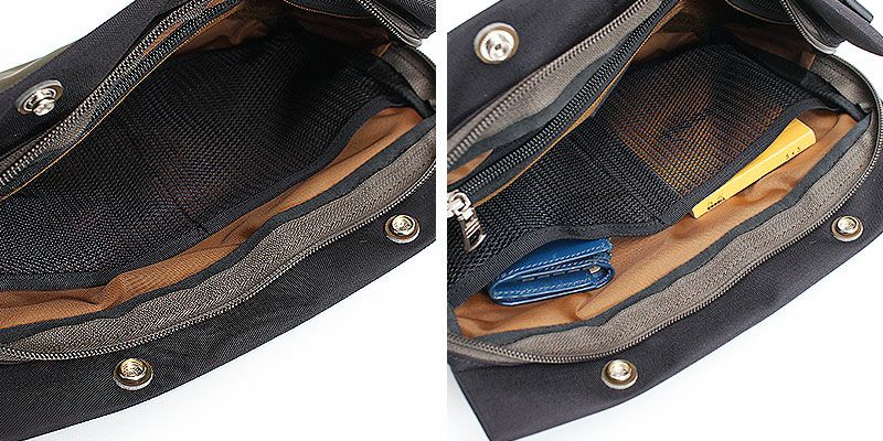 メッシュのオープンポケットも2つあり、小物の仕分けに便利です。