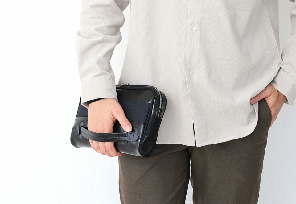 そしてその革の特性からスニーカースタイルにも合うクラッチバッグをデザイン。
