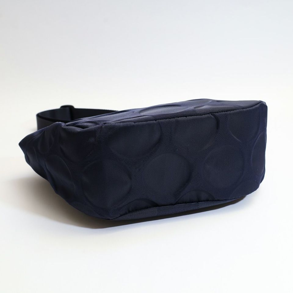 大きなドット柄の型押し生地に、強撥水加工をプラスして急な雨でも安心。軽量なので、アクティブに動きたい日にもぴったりです。