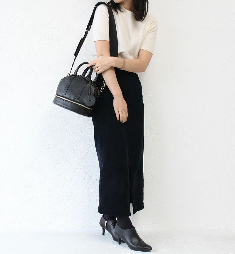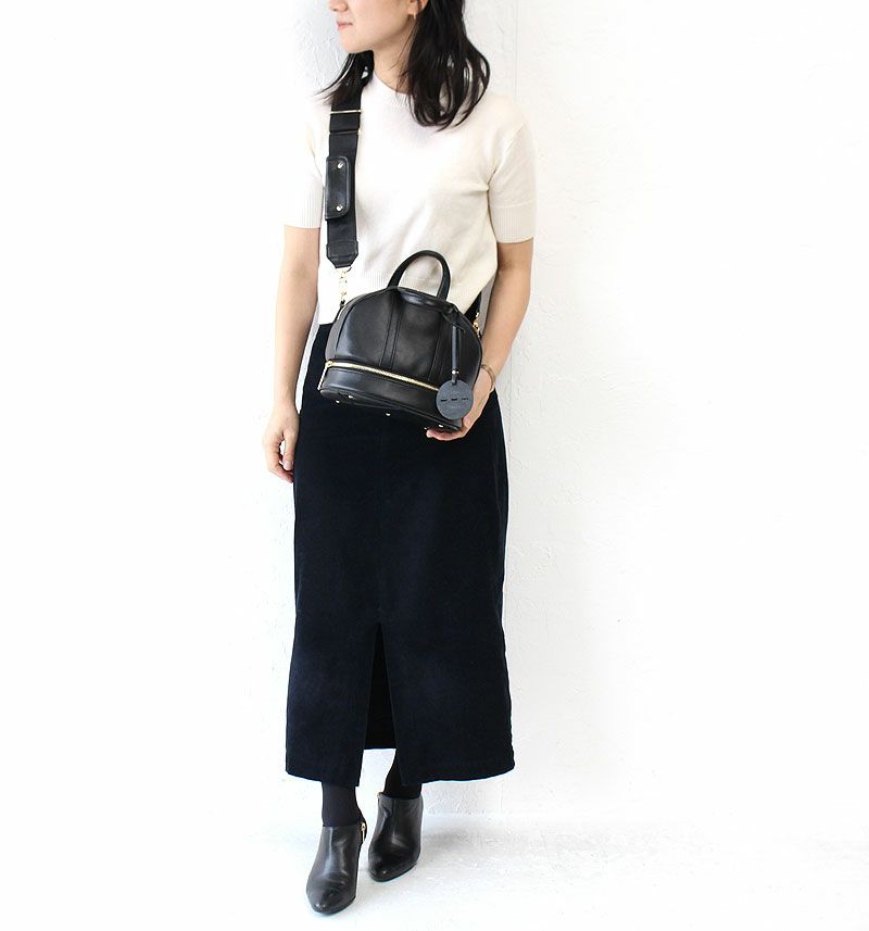 2wayヘルメットバッグは、コンパクトなサイズながらも長財布やスマートフォンなどが収納できるので、 普段使いからパーティーシーンなどでも使いやすいサイズです。