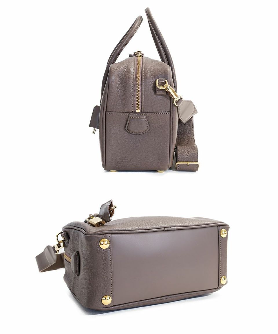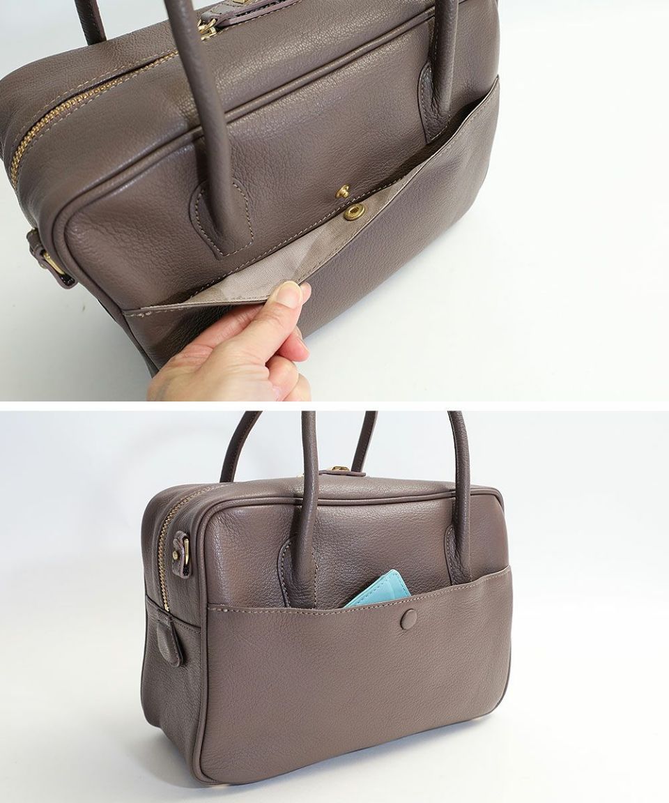 本体部分はやぎ革を使用し、底部分は牛革を使用しているので重たいものを入れてもバッグの底が沈んだりしないつくりになっています。
