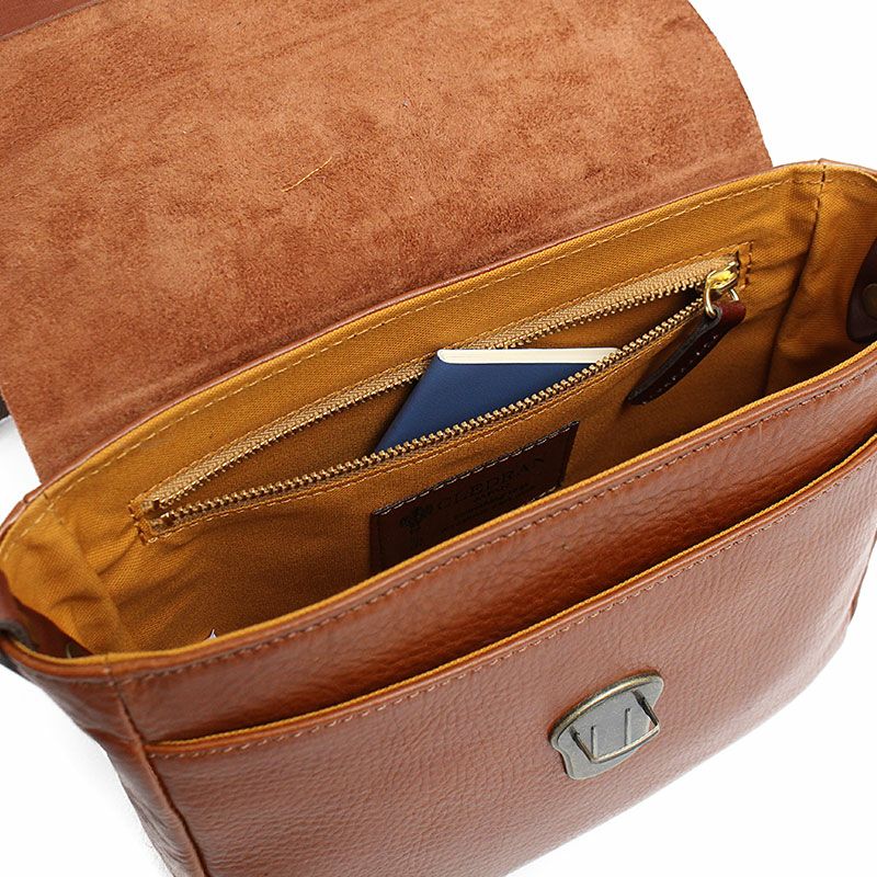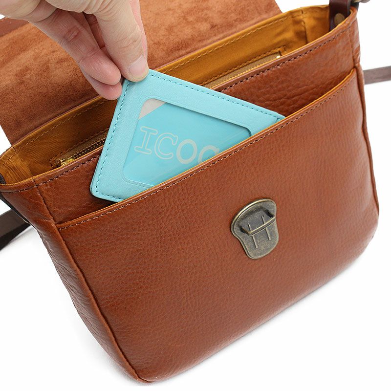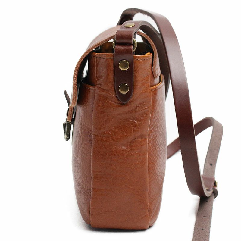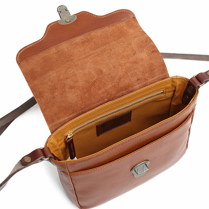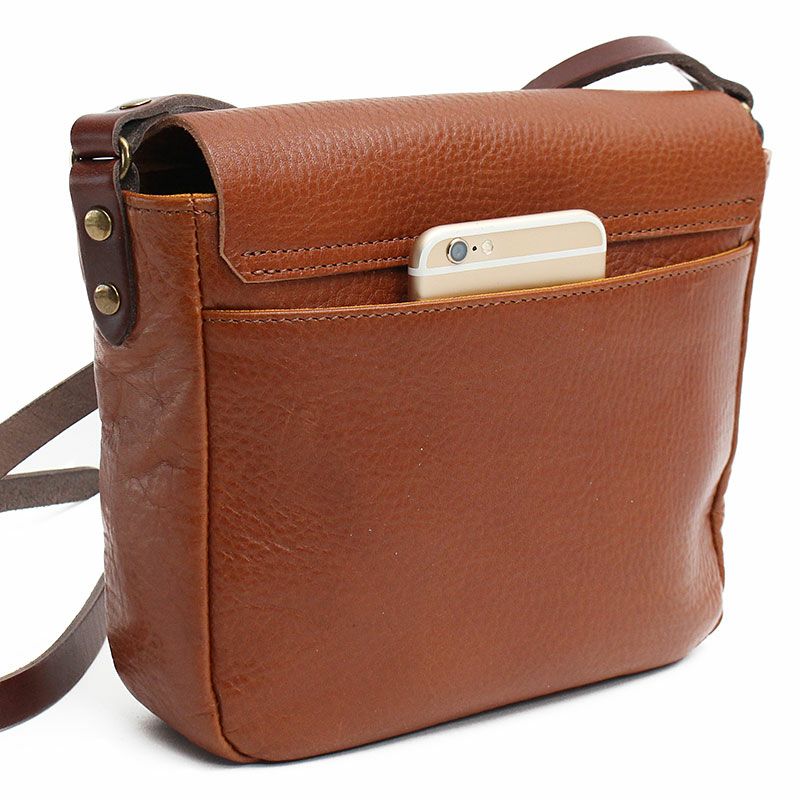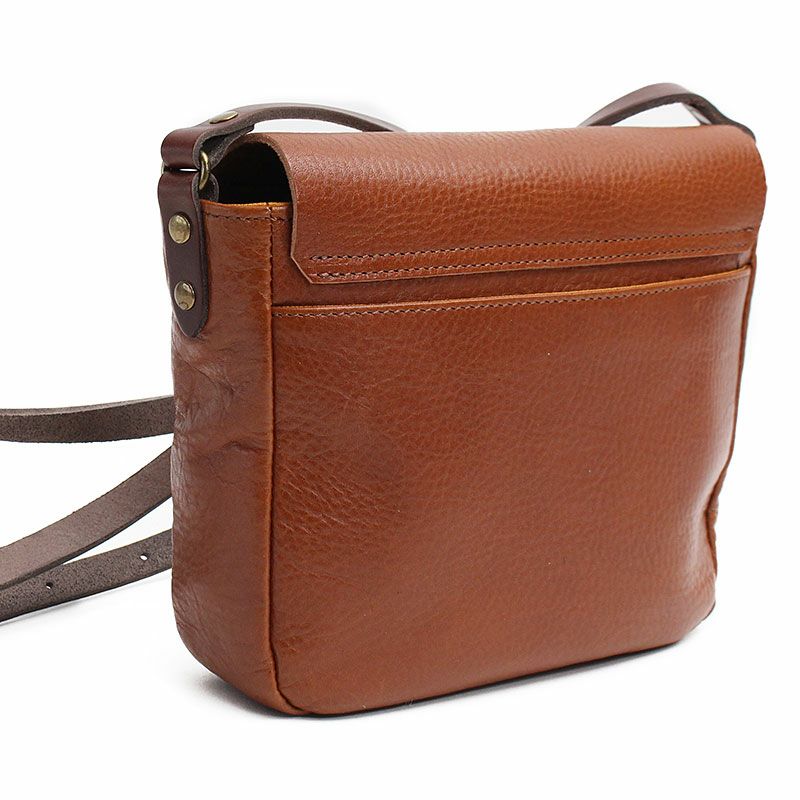 アンティークなムード漂う柔らかな曲線で描かれたフラップに差し込み錠、コーディネートに品よく寄り添うサイズ感です。