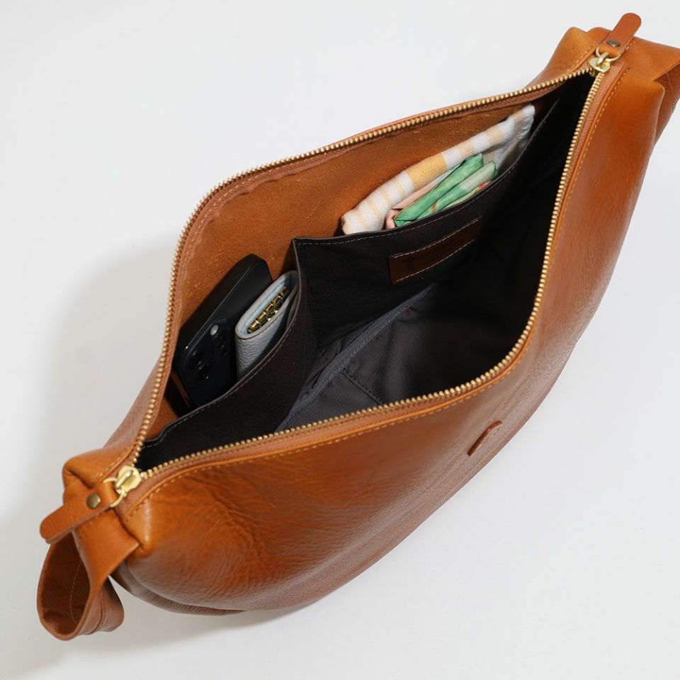 マチをしっかり取った設計で、長財布やポーチもすっきり収納可能。内側には小物整理に便利なポケット付きで、デイリー使いにうれしい機能性を備えています。