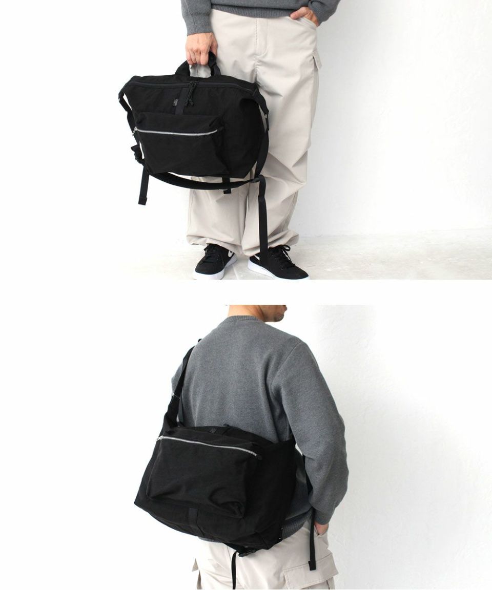自転車に乗る際などにメッセンジャーバッグのように使用できるアイテムです。
