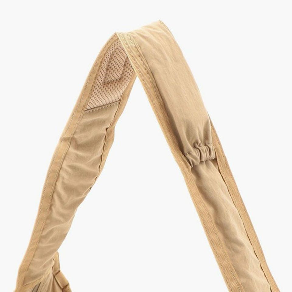 特徴的なショルダーストラップや隠しポケットなど、デザイン性を保ちながら実用性もしっかり確保。