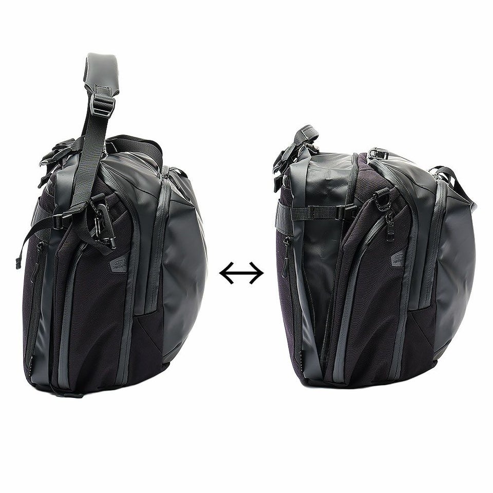 容量は通常18リットルから最大22リットルまで拡張可能。書類や衣類、ガジェットが増えても柔軟に対応でき、急な荷物の増加にも慌てず使えます。コンパクトさと収納力を両立した実用的な仕様です。