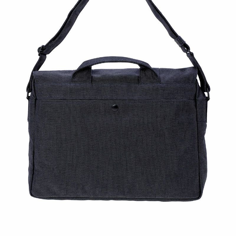 ショルダーバッグはA4サイズの書類が入るサイズでマチ幅もあり、かさばる荷物の収納も可能です。フラップにはスマートフォンやパスケースなど、取り出す頻度の高い荷物を収納するのに便利なポケットを備えています。ショルダーストラップの付け根にDカンを付属しているので可動域が広く、体にフィットしやすい仕様です。本体上部のハンドルで、手持ちのスタイルで持ち運ぶこともできます。