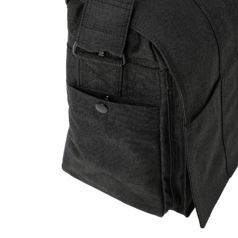 こうして生まれた「コーデュラ(R)ダック」は、コットンのもつ優しさやナチュラルな表情とナイロンの持つ強さや光沢による、これまでの織物にはない独特な風合いが魅力です。ローテクとハイテクが融合したこの生地は、タテ糸とヨコ糸で差を出して染色することで、奥ゆきのある味わい深い色に仕上げています。