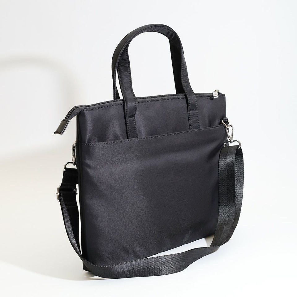 ショルダーベルトは取り外し可能で、手持ち・肩掛け・斜め掛けが自由自在。通勤から休日スタイルまで、シーンに合わせて楽しめる万能バッグです。