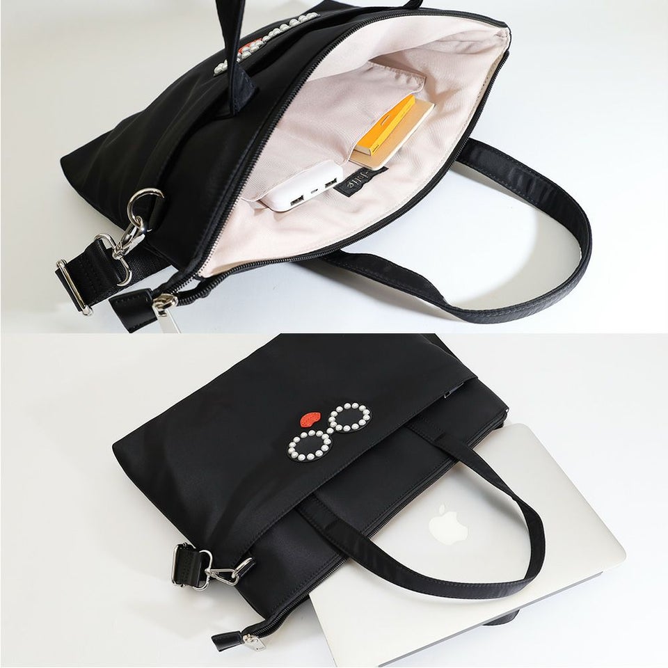 バッグの顔ともいえる、大きなパール付きサングラスが目を引くデザイン。持っているだけで気分が上がる、大人の遊び心が詰まったアイコンバッグです。