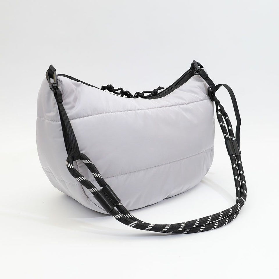 ブランドオリジナルのロープストラップがスポーティーなアクセントに。片側で長さ調整できるので、肩掛けも斜め掛けも自在に楽しめます。
