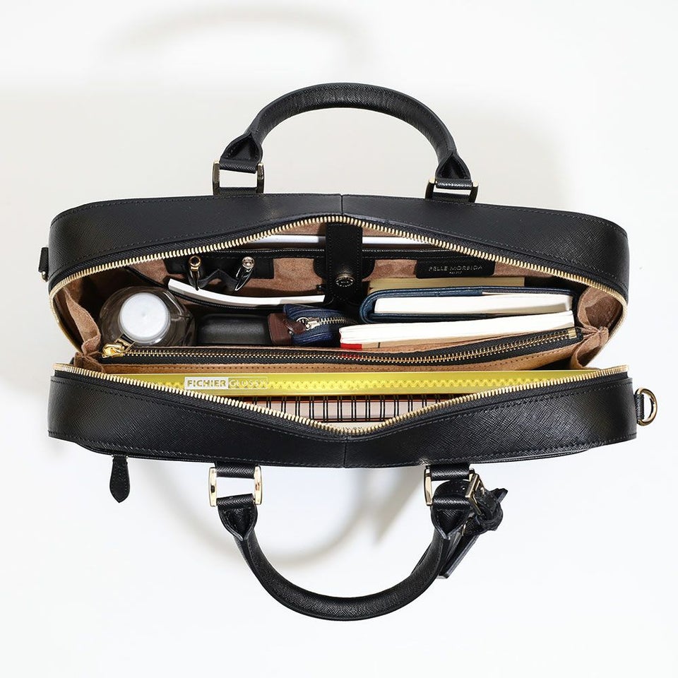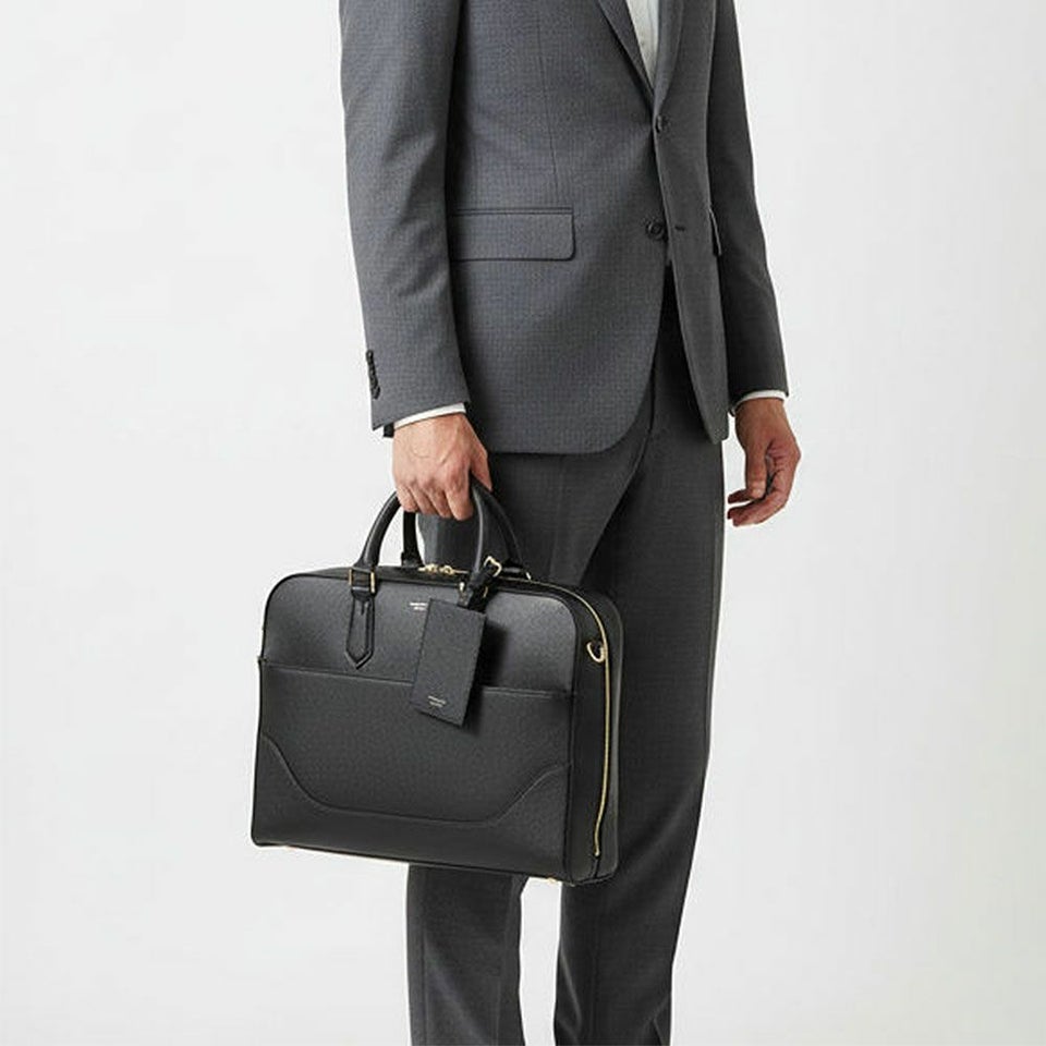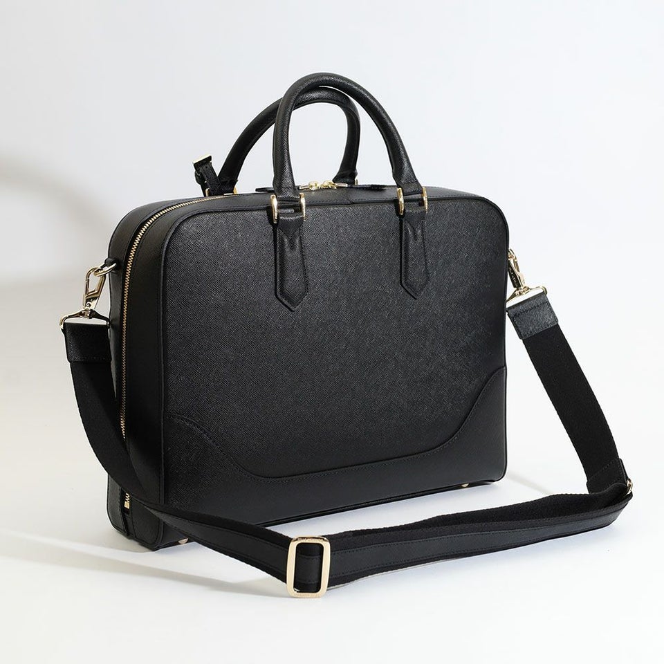 ウレタン入りポケットやペン差し、仕切り付きのメイン収納を備え、書類やPCをスマートに整理可能。底びょう付きで自立しやすく、ビジネスシーンでも上質さと実用性を両立します。
