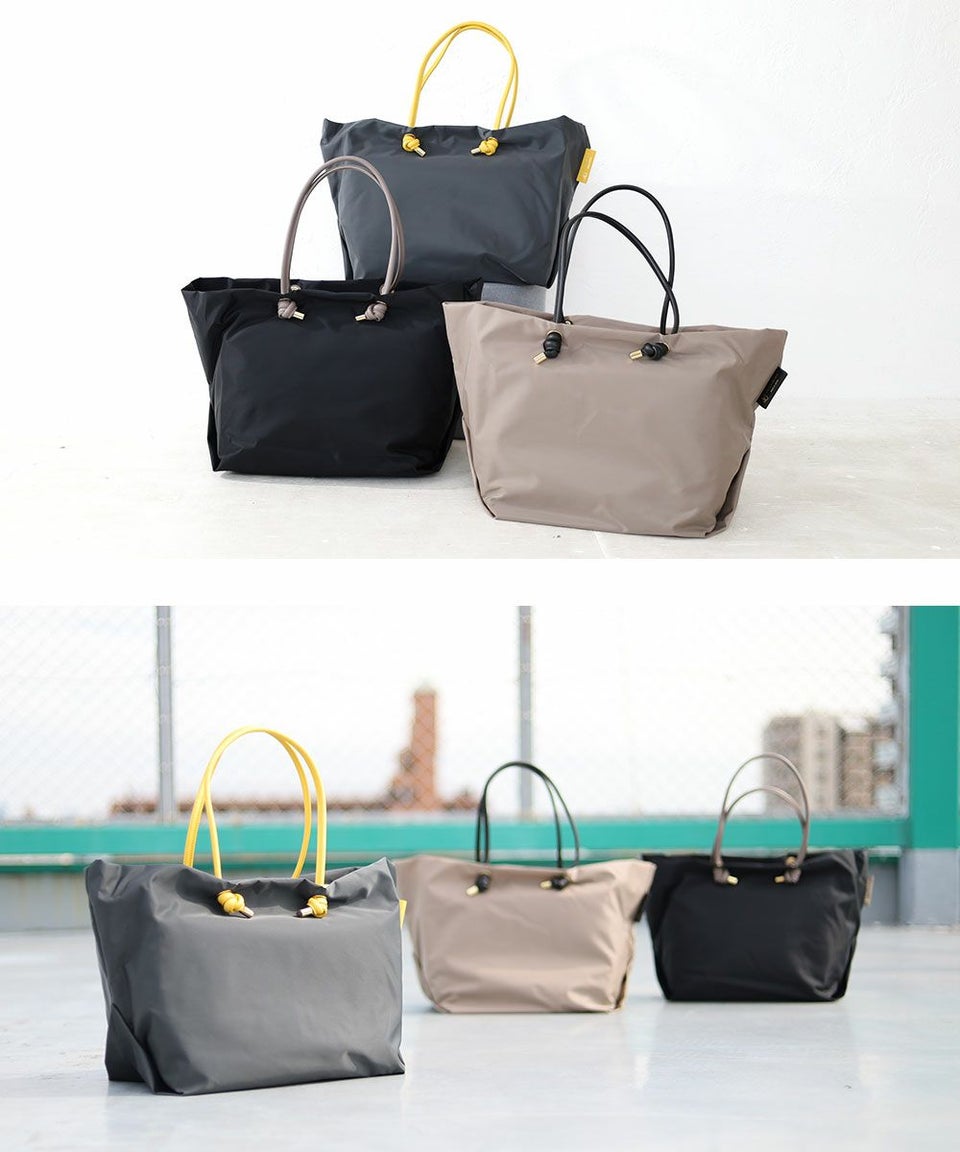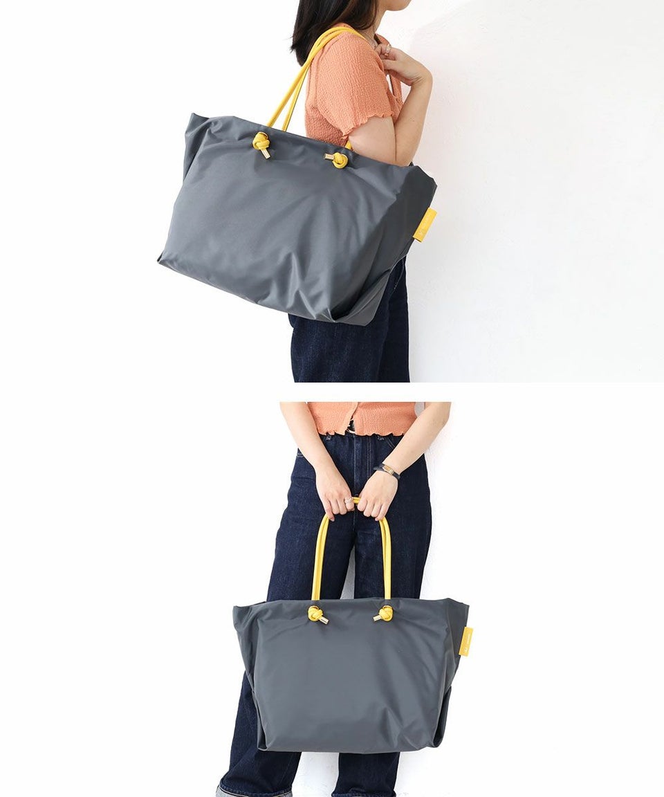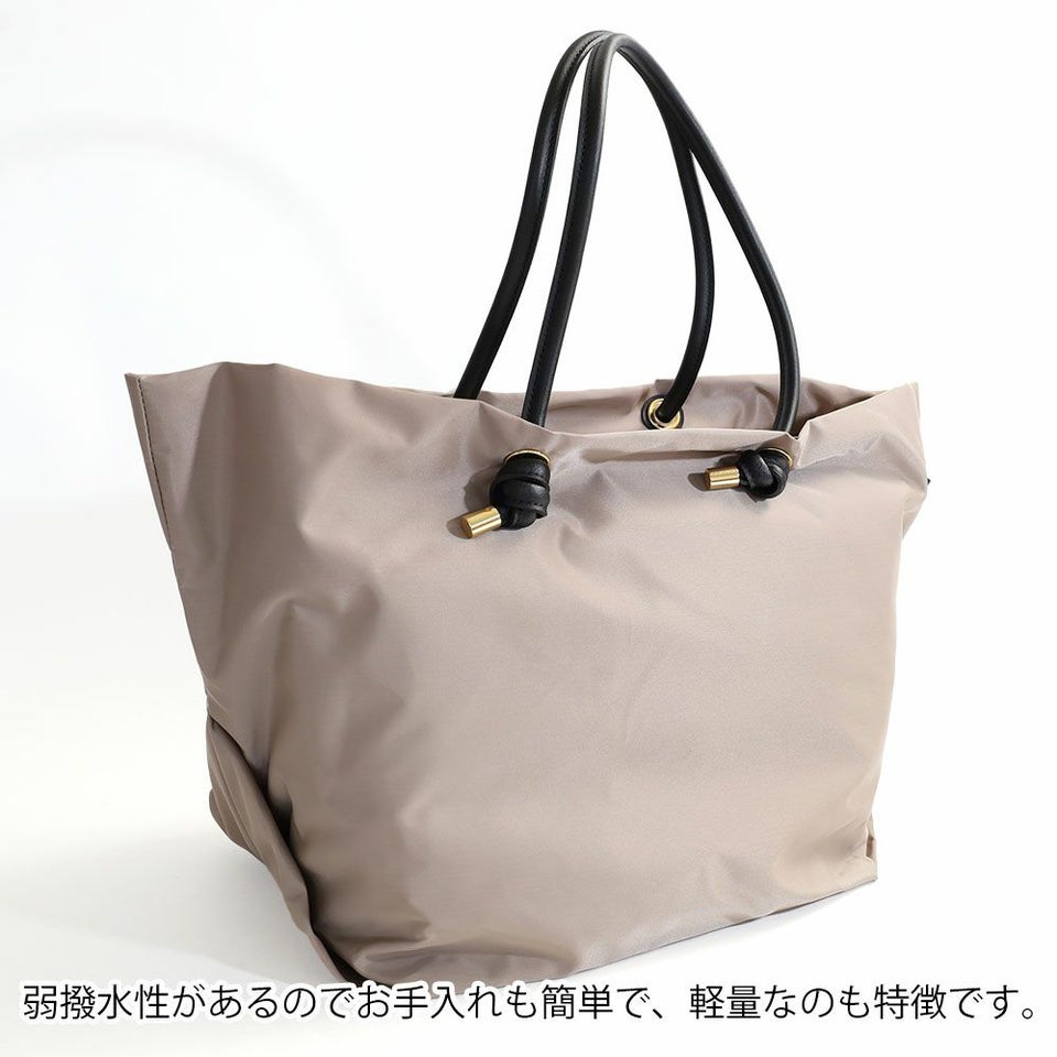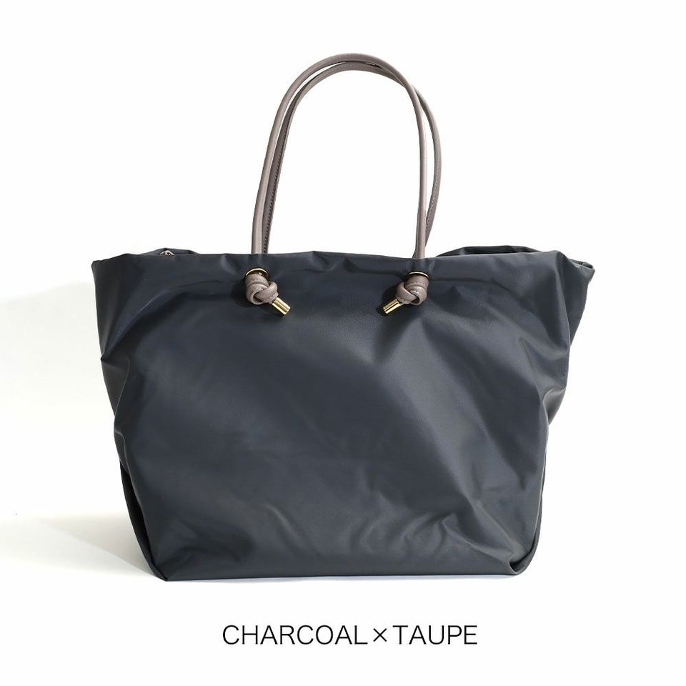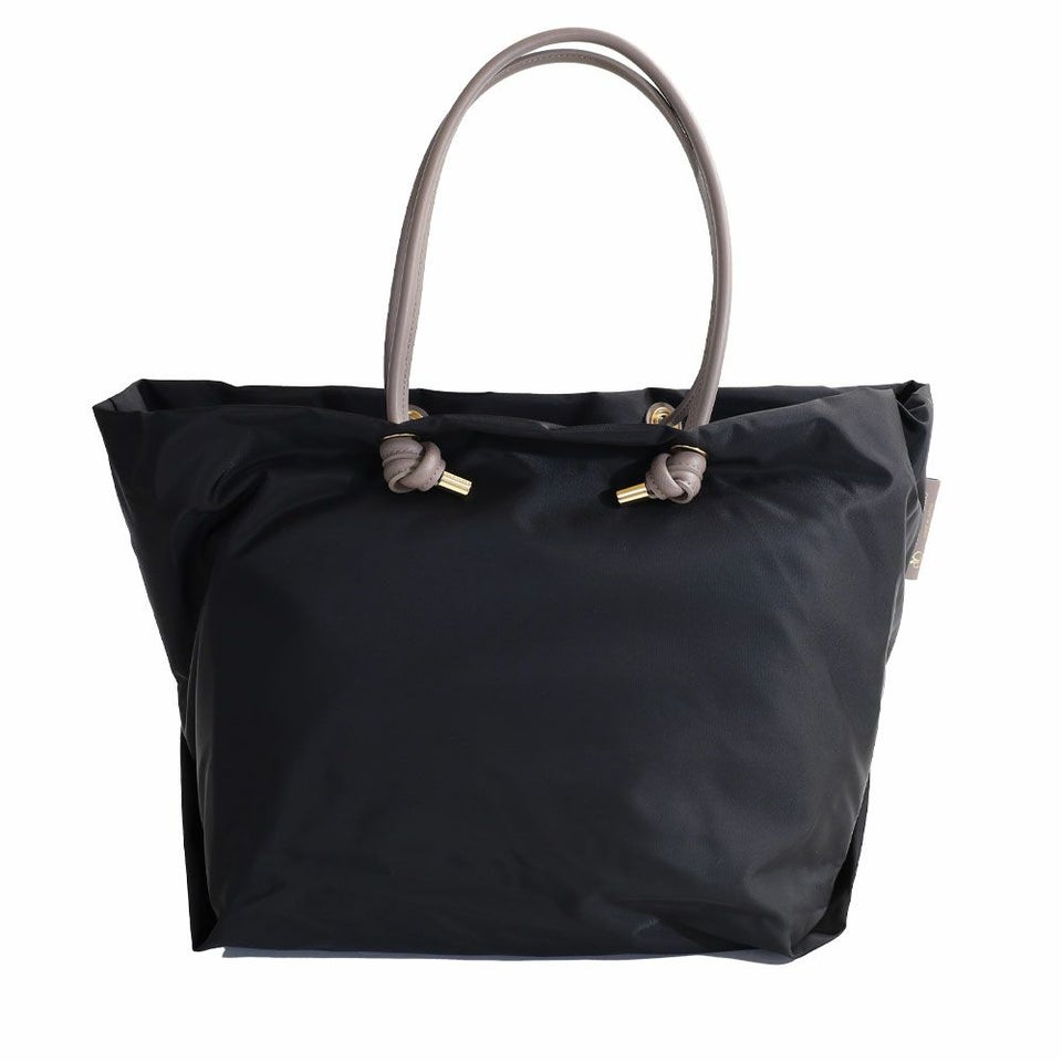シンプルなデザインのボディにノットハンドルがアクセントになったトートバッグのLサイズ。