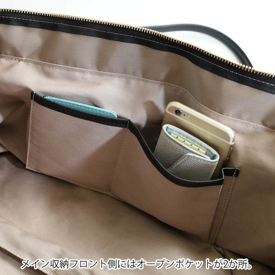 内側は3層に分かれており、ファスナーを閉めたままアオリポケットにスマホやパスなどを収納できるので通勤などで安心してお使い頂けます。