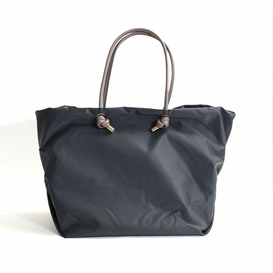 シンプルなデザインのボディにノットハンドルがアクセントになったトートバッグ。
