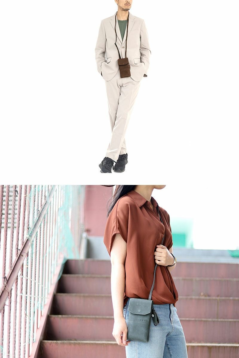 程よいシボ感のあるカラーリングがモダンで優しい印象のモバイルポーチは、