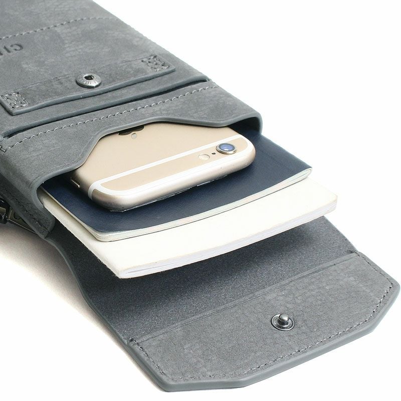 薄型のノートやパスポート、スマートフォンなどが収納可能。