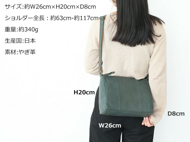 軽量で柔らかなやぎ革を使用したデイリーバッグ。小ぶりに見えますが、長財布がしっかり入るサイズ感なので、日常使いにもぴったり。