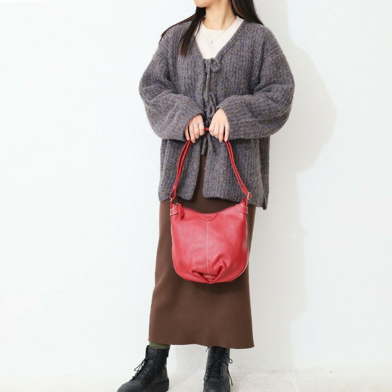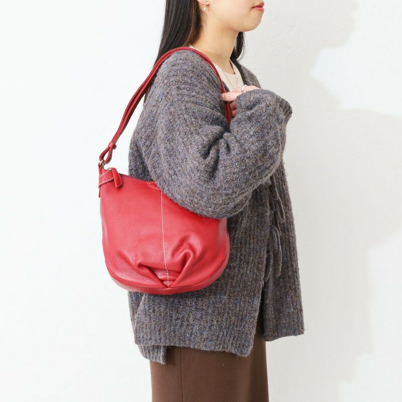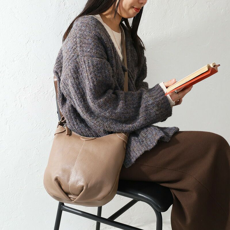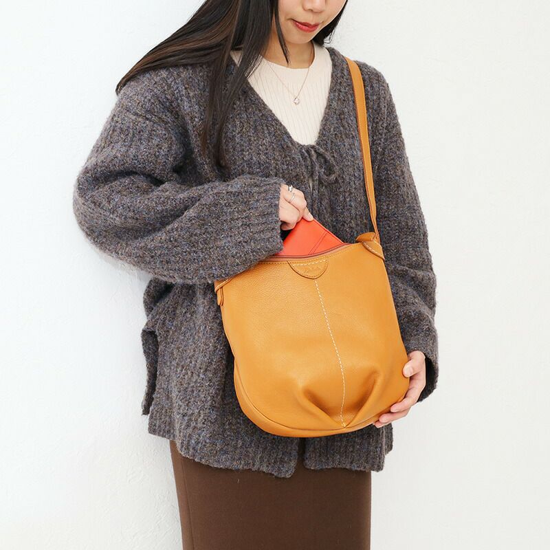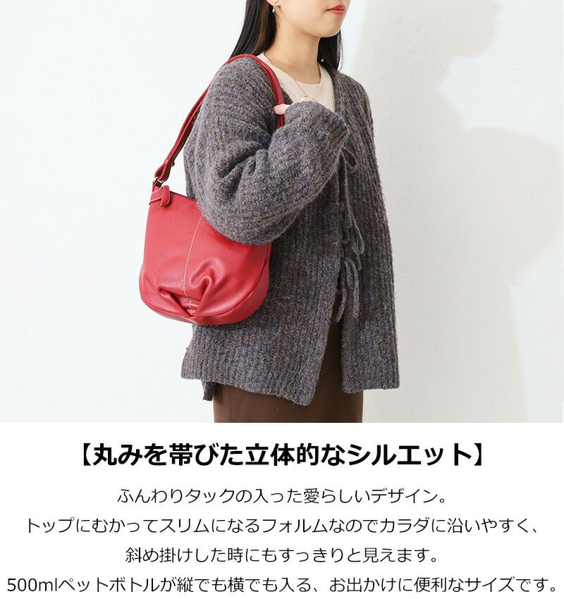 トップに向かってスリムになるフォルムなので体に沿いやすく、斜め掛けしたときにもスッキリと見えます。