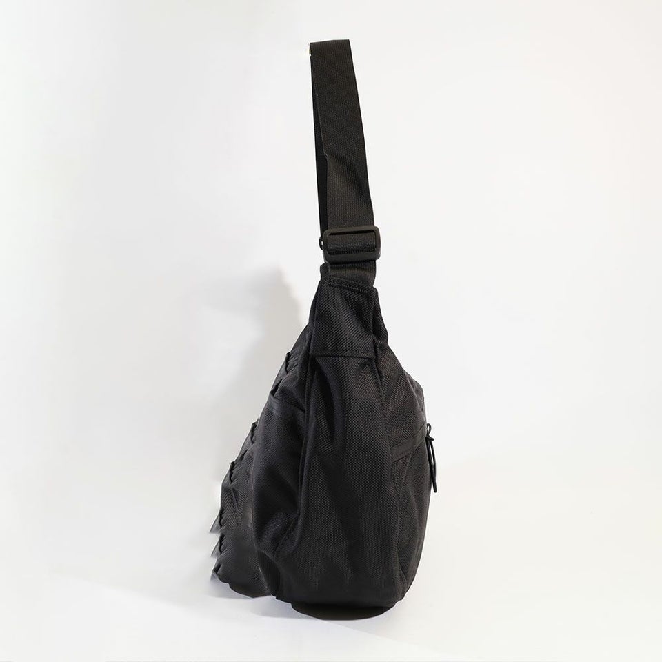 日常使いから週末のお出かけ、さらには旅行やライトなアウトドアまで幅広く対応する絶妙なサイズ感。シンプルながらも個性的なシルエットで、コーディネートにも自然に馴染みます。男女問わず使いやすい、まさに“ちょうどいい”ショルダーバッグです。