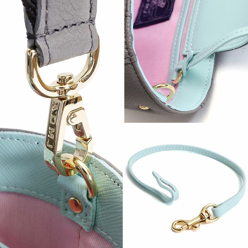 それぞれ取り外しが可能なショルダーベルトとキーストラップ付き。