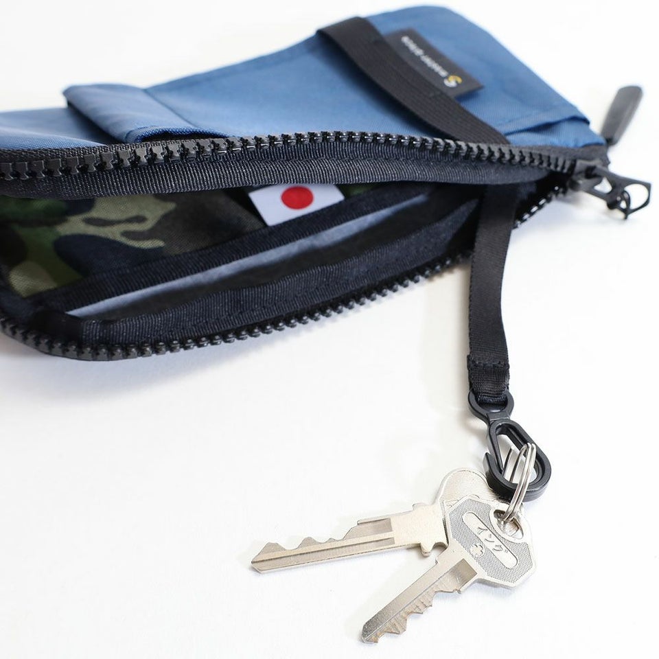 耐久性と防水性を兼ね備えながら環境負荷の少ない素材を使用し、他のバッグ等にもセットアップできるミニマルデザインのカジュアル小物シリーズです。
