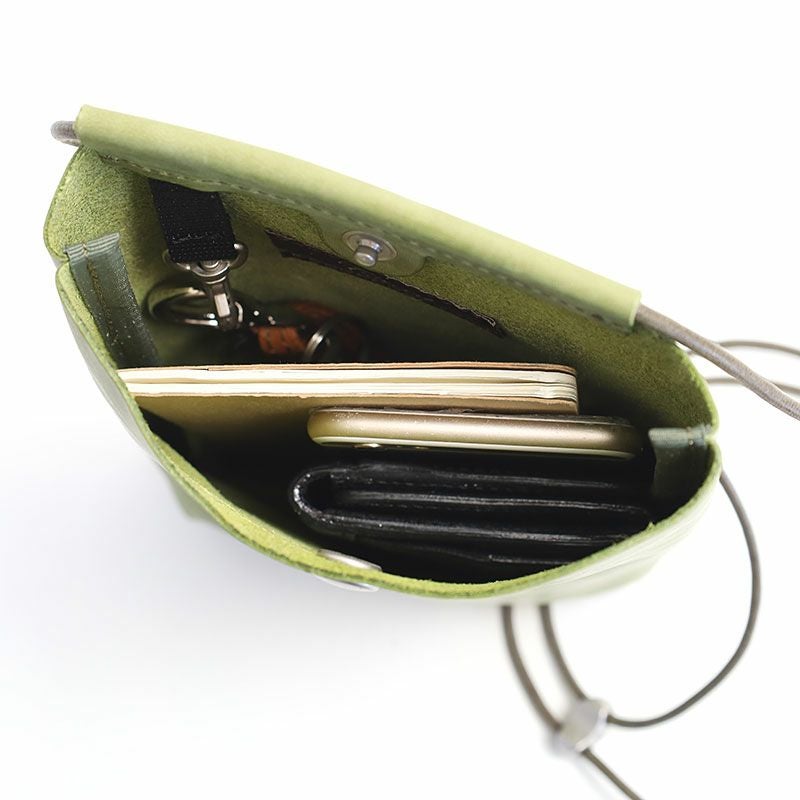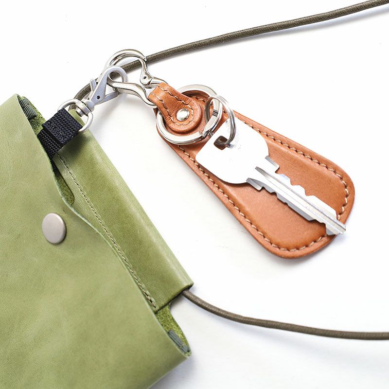 内側にフックがついていて鍵やパスケースなどをひっかけられ、必要最低限の持ち物をスマートに持ち歩けます。