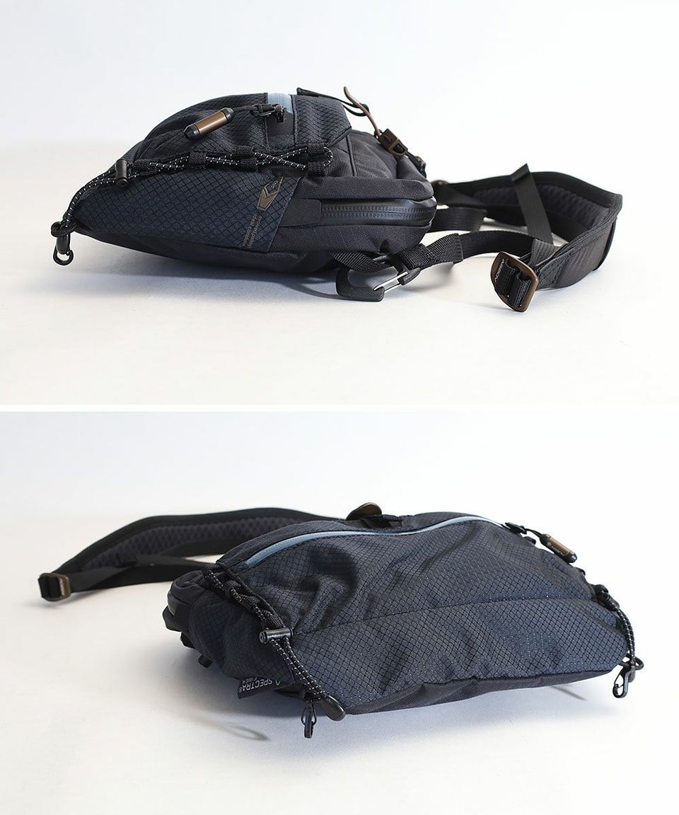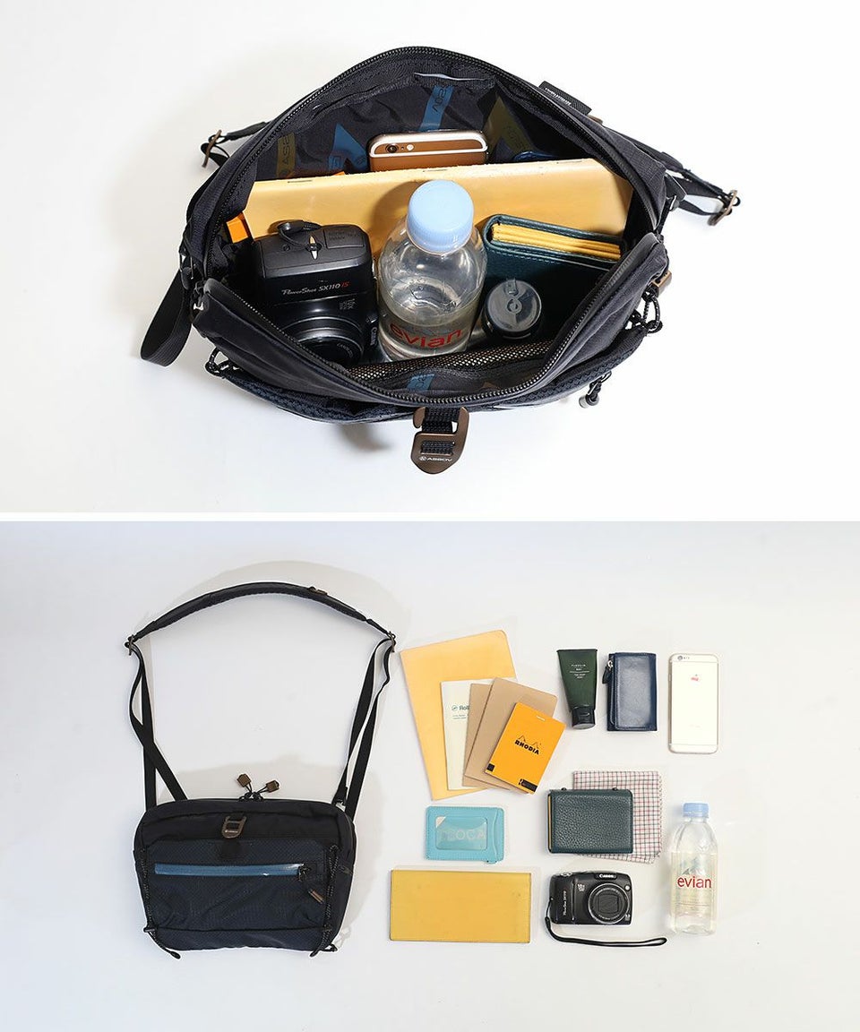 メッシュポケットや仕切りの付いたポケットを備えたメイン収納に、容量を調整できるハンモックポケットなど、単体利用時も機能性抜群のサコッシュです。
