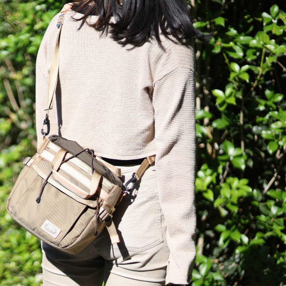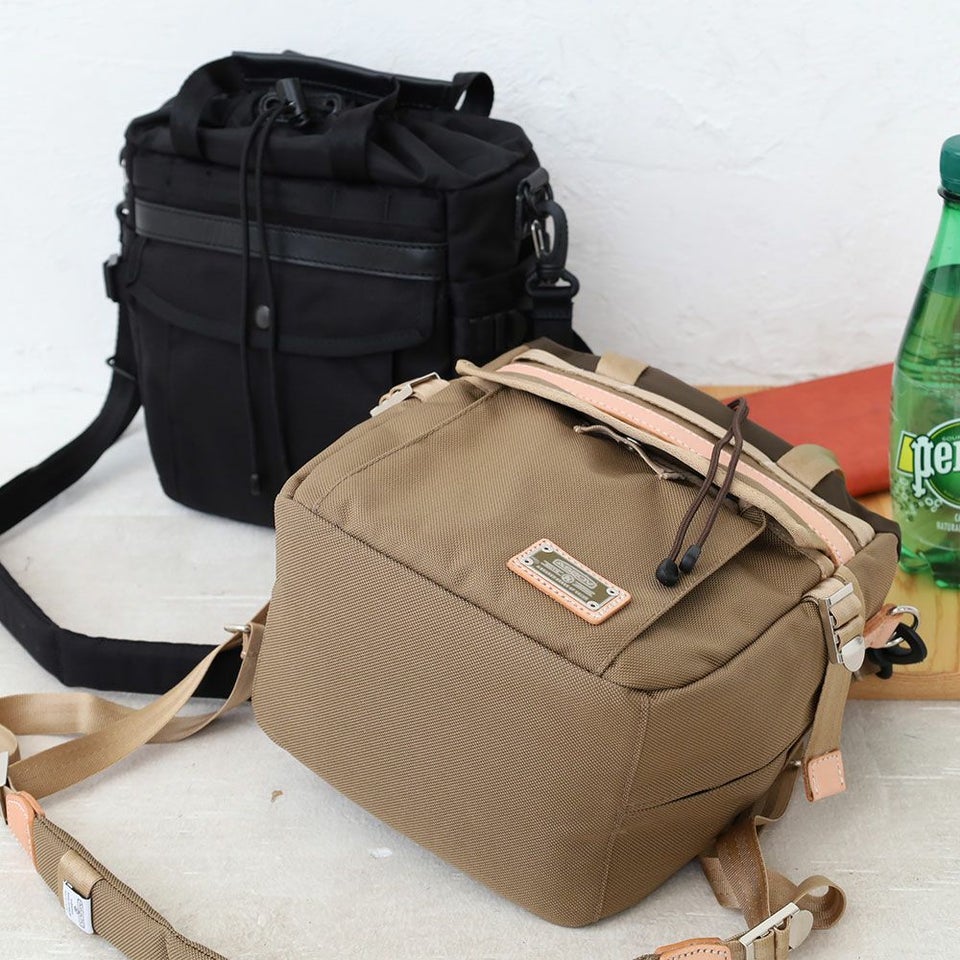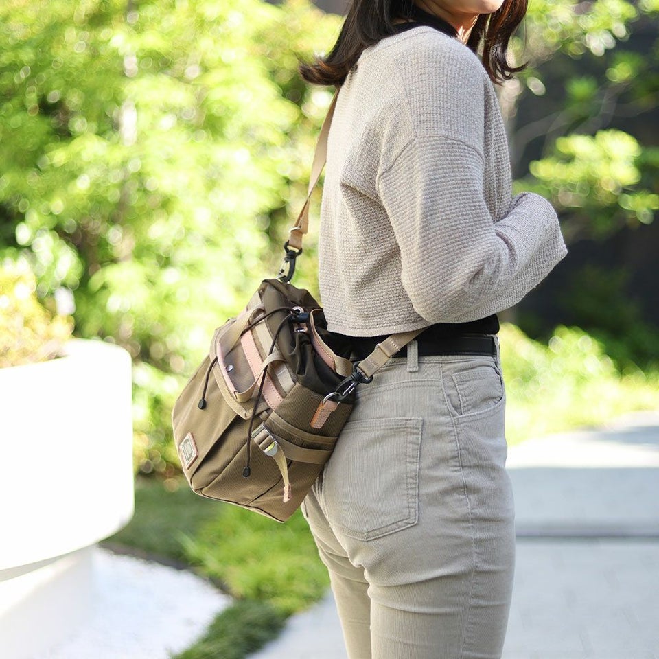 収納力と耐久力に優れた巾着型ショルダーバッグ。