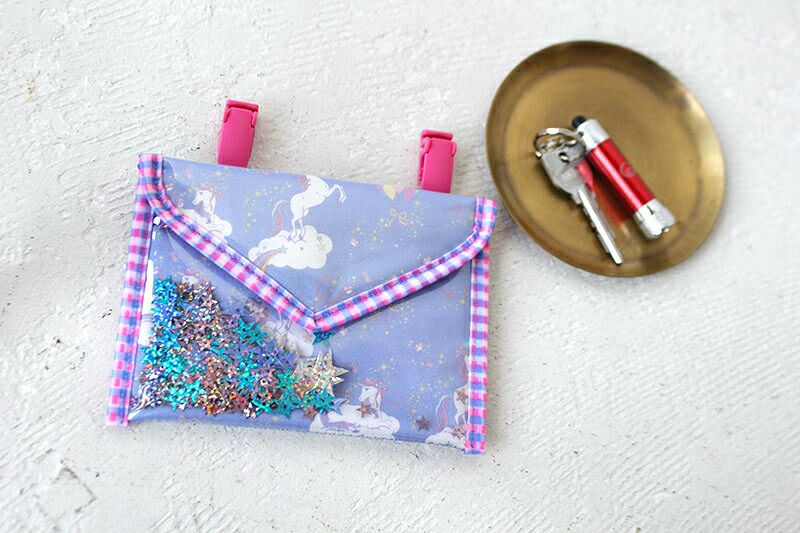 fafa スパンコールがキラキラ揺れるユニコーン柄の移動ポケット