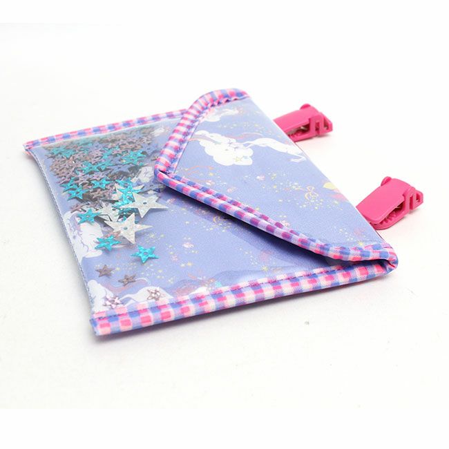 フェフェ スパンコール入り クリップポーチ - ブルーモノケロス ブルー ユニコーン