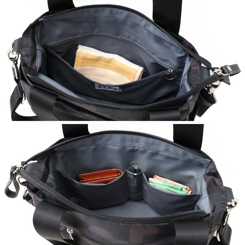 バッグ正面と背面にファスナーポケットが1つずつ備わっています。