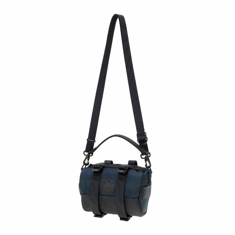 ロールバッグはウォレットやスマートフォンなど、身の回りの必需品を収納できるサイズで、普段使いやサイクリング時に使用することができる機能的なアイテムです。取り外し可能なハンドルとショルダーストラップが付属し、肩掛けだけでなく手持ちでも使える2WAY仕様です。背面に配したナイロンテープで自転車に直接取り付けることができ、ハンドルバー バッグとして使用することも可能です。