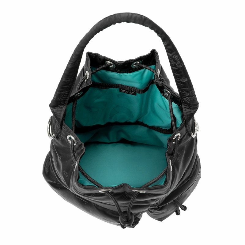 2WAYツールバッグは口元をドローコードで開閉する巾着型のアイテムです。本体側面のファスナーからもメイン収納に直接アクセスできます。取り外し可能なショルダーストラップが付属し、手持ちだけでなく肩掛けでもお使いいただける2WAY仕様です。