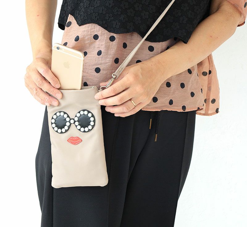 サングラスやスマイルをモチーフとしたバッグや小物で大人気のアジョリーから、モバイルポーチが登場。