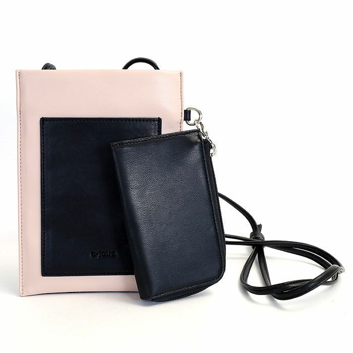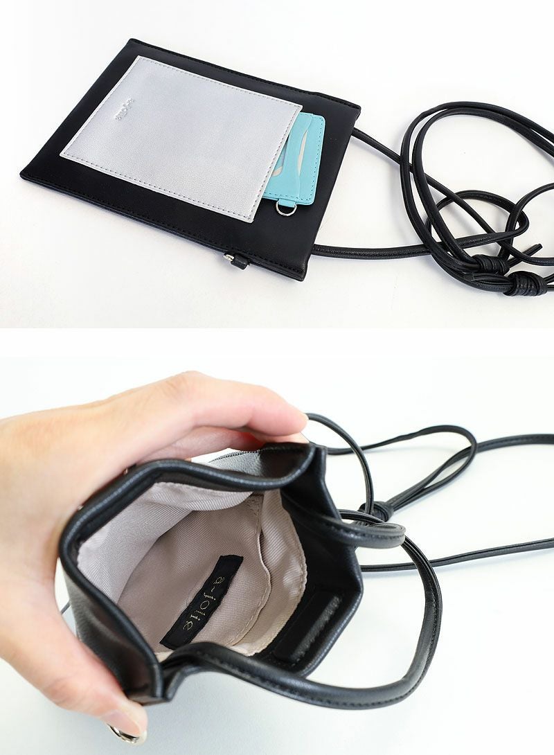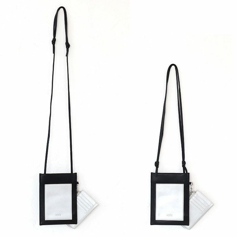 サングラスやスマイルをモチーフとしたバッグや小物で大人気のアジョリーから、 モバイルポシェットが登場。 スマホ+αだけを持ってちょっとした外出にぴったりなサイズ感です。 取り外し可能なポーチが付属! カードポケットが4か所ついています。 ショルダーは長さ調節が可能です。