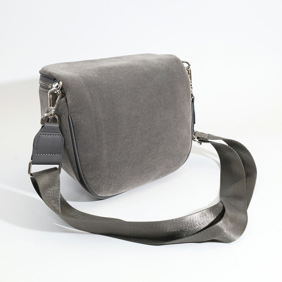 手触りやわらかなベロア素材と、ころんとしたシルエットが魅力の大人かわいいボディ。季節感のある素材が秋冬コーデにもぴったりマッチします。