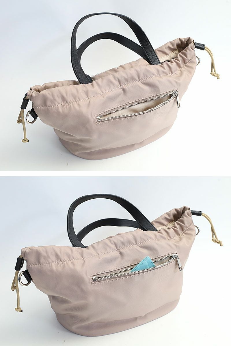 開閉口は巾着タイプで、内側にはマグネットボタンも付いているので中身が簡単に出てしまうこともありません。