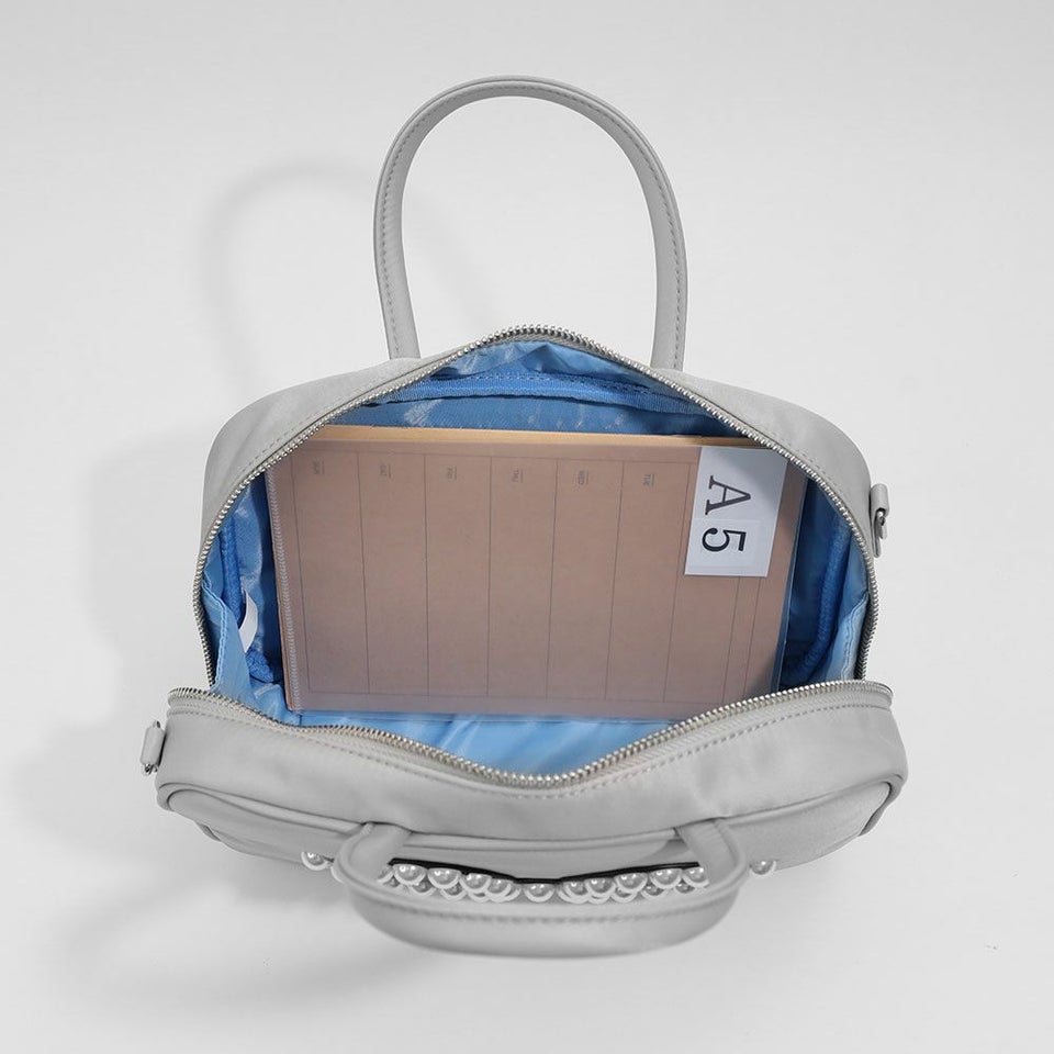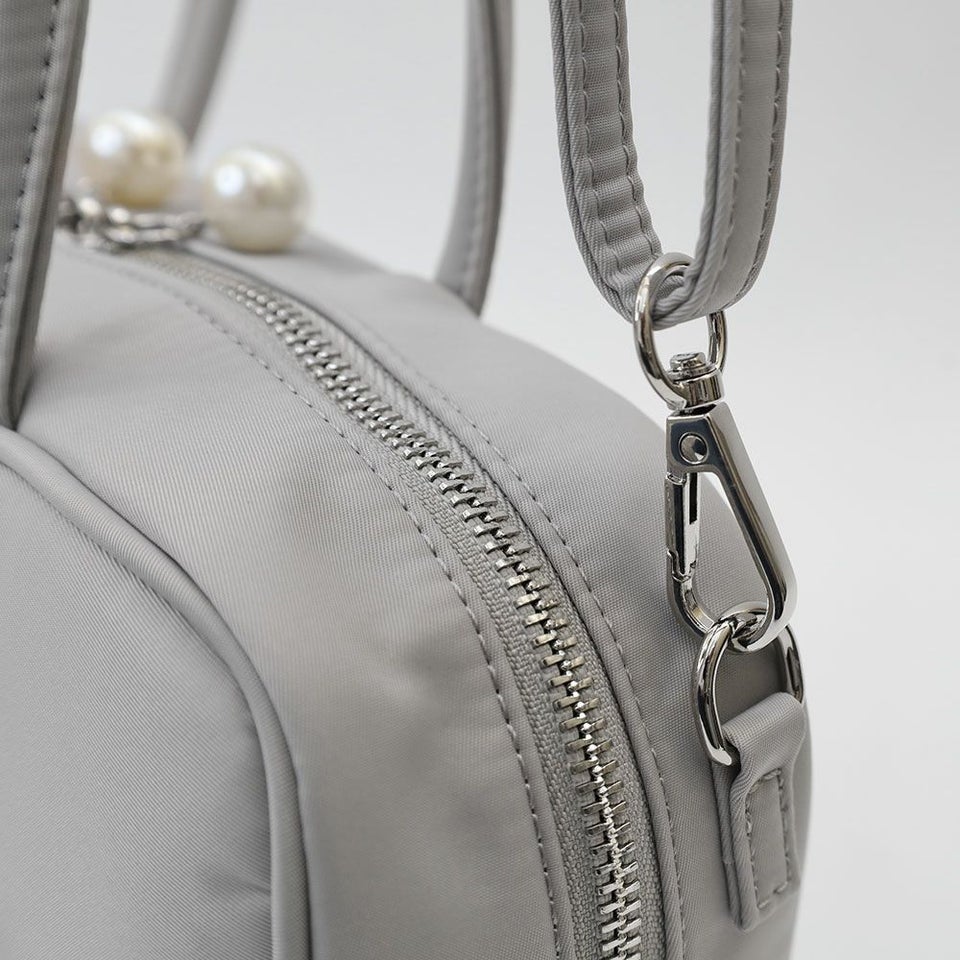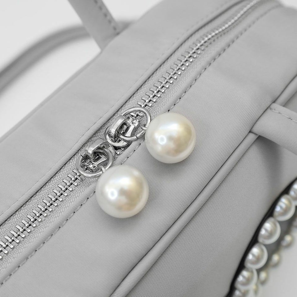 ファスナーの引き手には上品なパールがひと粒。さりげないポイントで、大人のかわいらしさをプラスしてくれます。