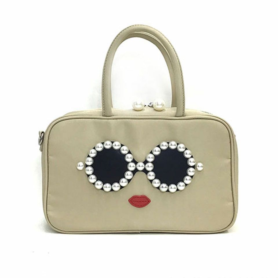 ※こちらのバッグはAJYM-476【パールサングラスちゃん ナイロン スクエアフェイスバッグ ミニ】より大きいサイズになっております。