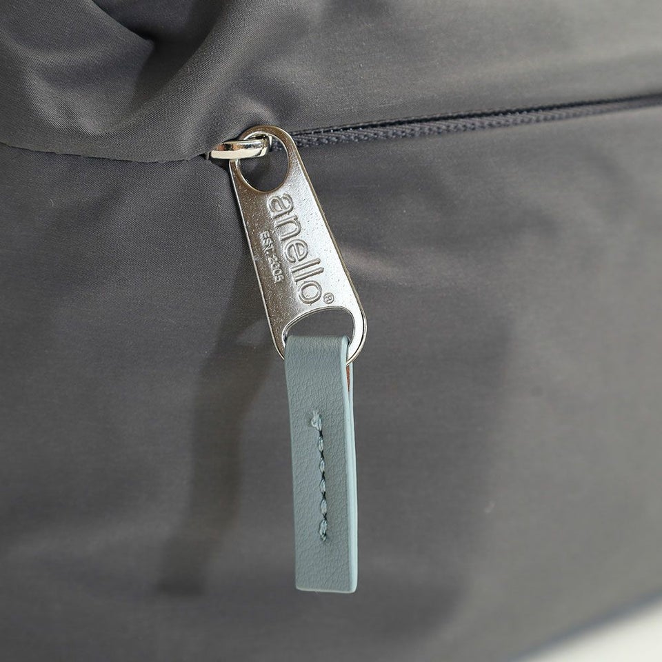 柔らかな肌触りのコットン調撥水生地を使用することで、 あたたかみのある優しい印象に。 合皮の引手がアクセントに。